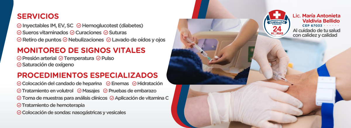Enfermera a Domicilio Lic. María Antonieta Valdivia Bellido CEP 67033